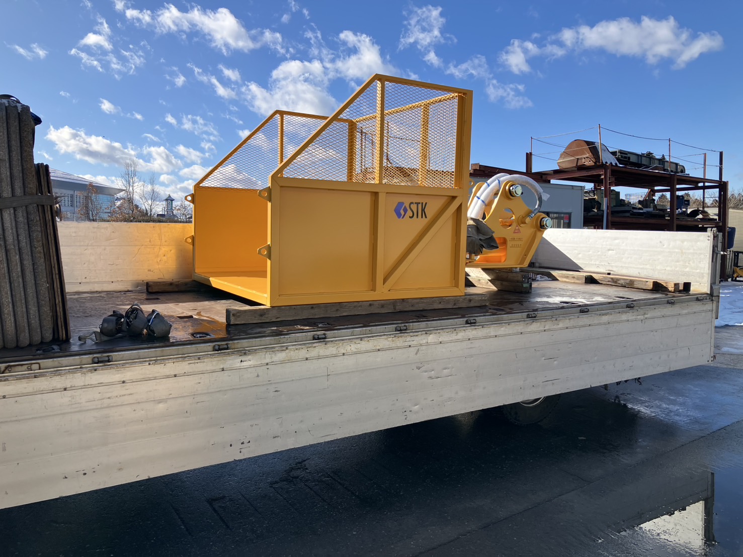 また、油圧シリンダーが付いており左右90°に折れ曲がるので、建物にぴったり沿うように配置することができ安全に解体物を載せることが可能です